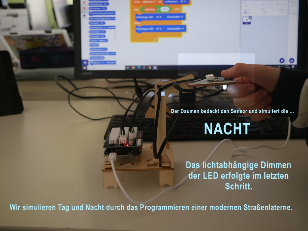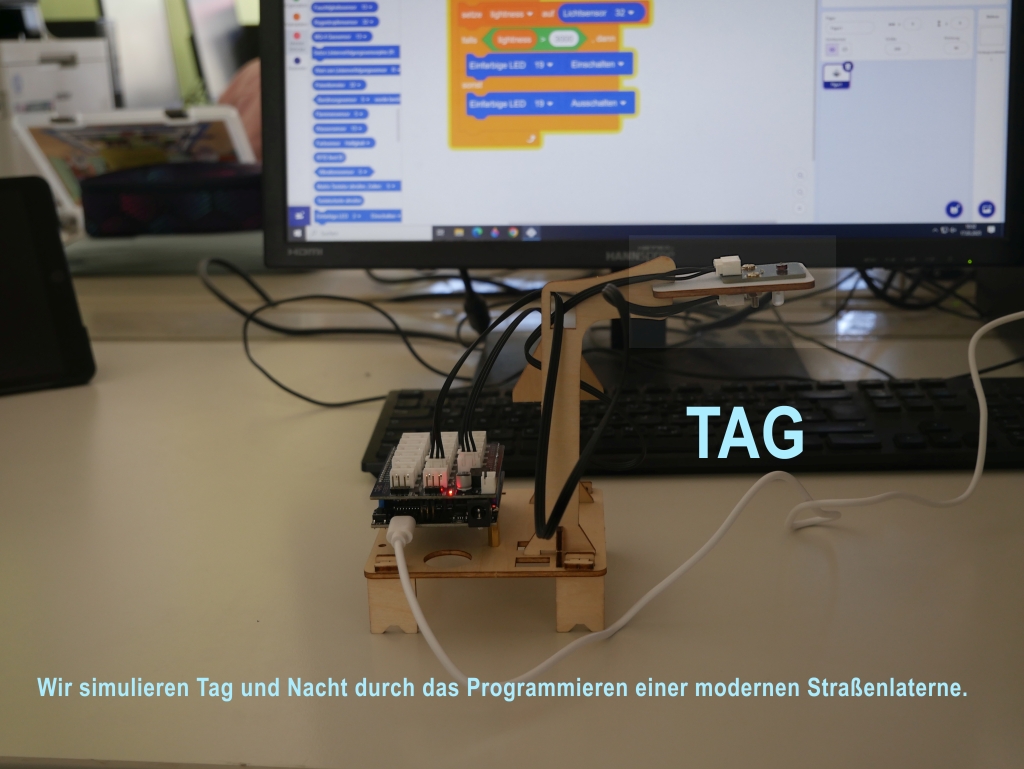 - Baue eine intelligente Straßenlaterne, die sich automatisch einschaltet und leuchtet, wenn es dunkel ist, und sich automatisch ausschaltet, wenn es hell ist.