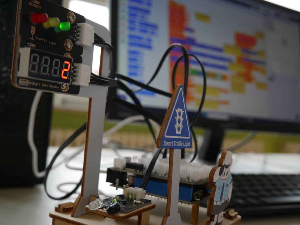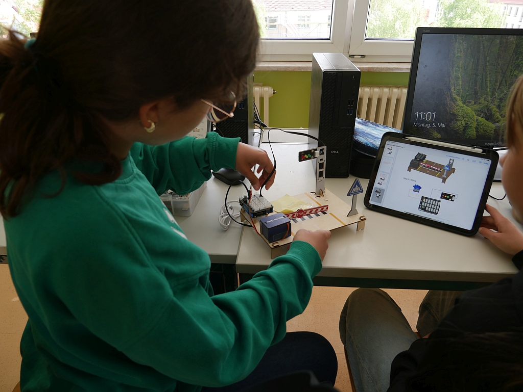 Die Klasse 6b testete das Intelligent Transportation Kit der Firma ACEBOTT im Informatikunterricht.