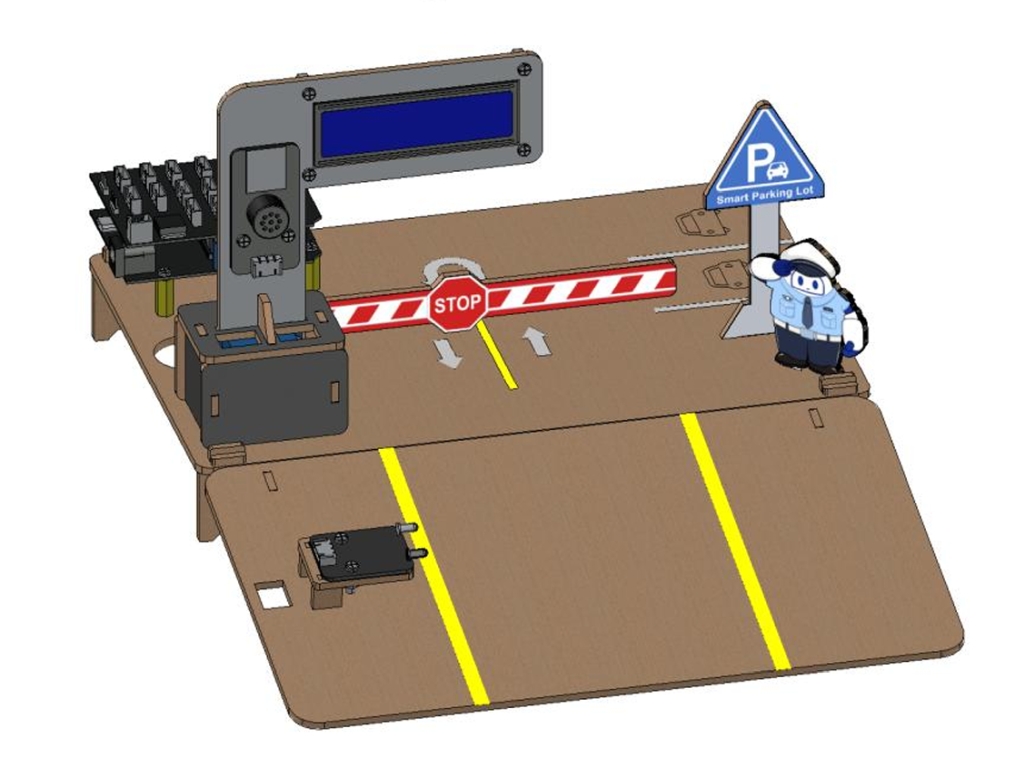 RFID (Funkfrequenz-Identifikation)- und Infrarot-Hindernisvermeidungssensoren Steuern das Öffnen und Schließen der Schranke auf dem Parkplatz.